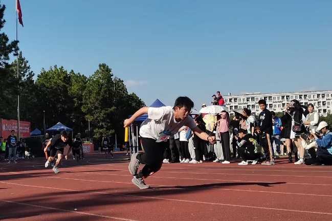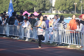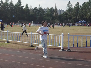 阳光明媚,秋意盎然,运动员们足下生风,你追我赶,奋力向前冲。