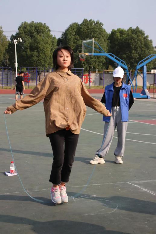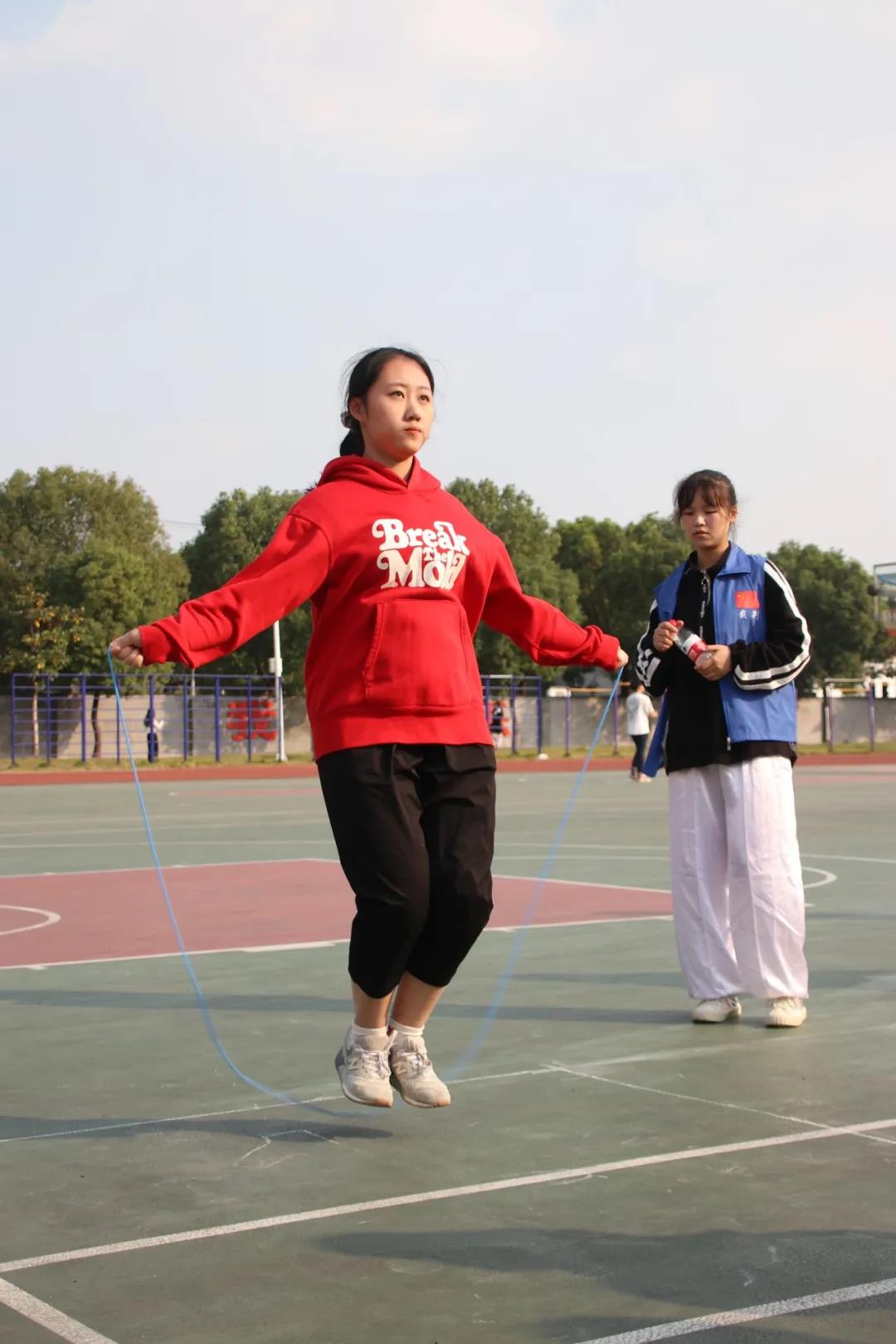 短短的跳绳在你手中挥起,每跳一下,你都是在谱写自己青春的乐章。虽然胳膊已经麻了,腿已经酸了,但你坚持的样子是那么美丽,你挥起的双臂是那么动人。加油跳啊,抓住手中的绳子就是抓住了胜利,握住手中的绳子就是握住了人生!
