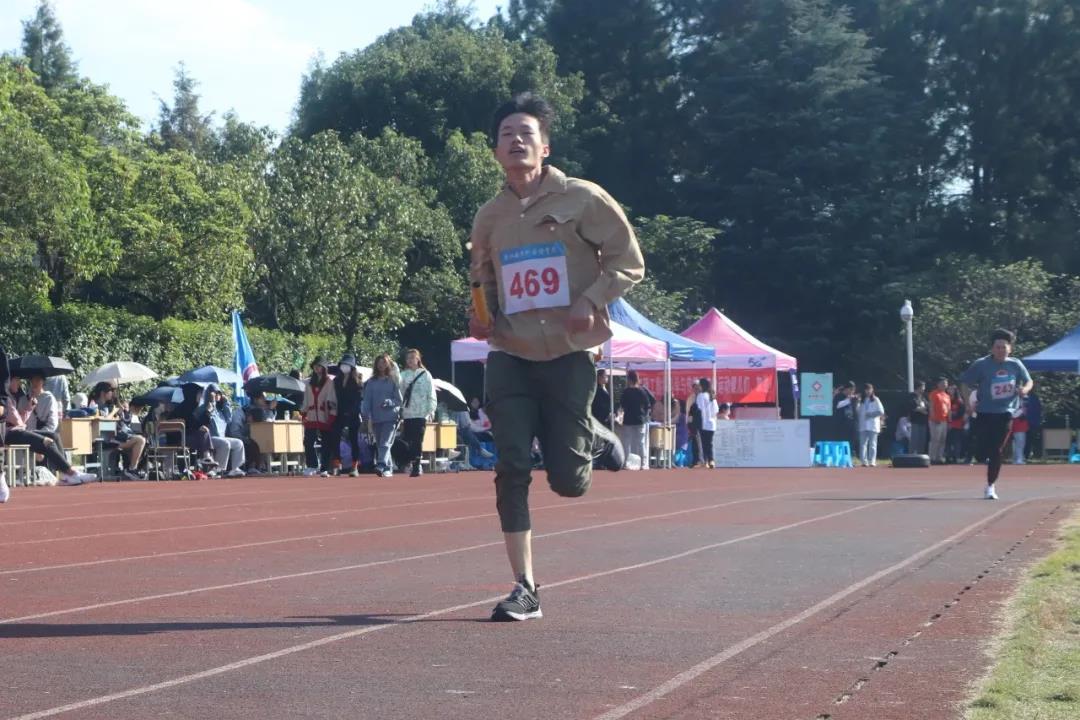 阳光明媚,秋意盎然,运动员们足下生风,你追我赶,奋力向前冲。