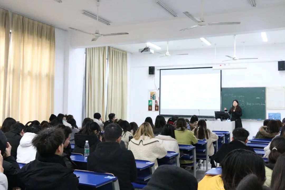 首先,钱芳斌老师向大家介绍了学校为会展经济与管理专业18级同学制定的实习和课程安排。学习和实践是相辅相成的,所以在正式实习之前,学校将开展部分集中性授课,注重双语教学,为同学们铺好实习路。同时,她对基本项目进行了介绍,就参与要求、岗位需求、工资待遇、参与优势等方面展开。本次的实习的项目是2021年第十届上海花博会(中国花卉博览会),作为我国规模最大、档次最高、影响最广的国家级花式盛会呈现在世人面前。钱芳斌老师对大家说,这是一次很好的机会,希望大家好好把握。此外,本次项目承办方中青旅将在下周一(12月21日)来本校开展宣讲会,就本次实习,为同学们答疑解惑。