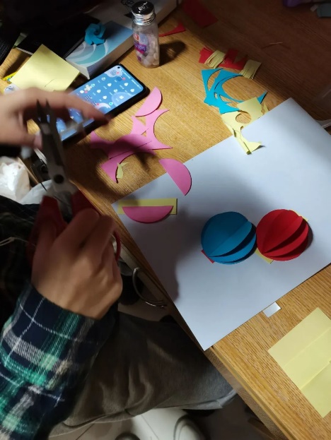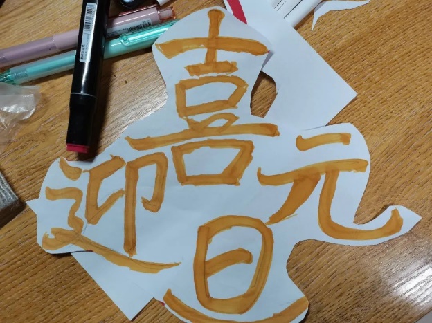张灯结彩迎新年,齐心协力谱新篇。2021年元旦如约而至。家家户户都挂上了新灯笼,贴上了“喜迎元旦”的字帖。我们寝室写了“喜迎元旦”的字,也用彩纸制作了些灯笼将其挂了起来,以求来年的顺利和兴旺。在作品中出现的“大圆”意味着团圆,同样也代表着“0”。新的一年从新开始,惟愿大家向上向前!