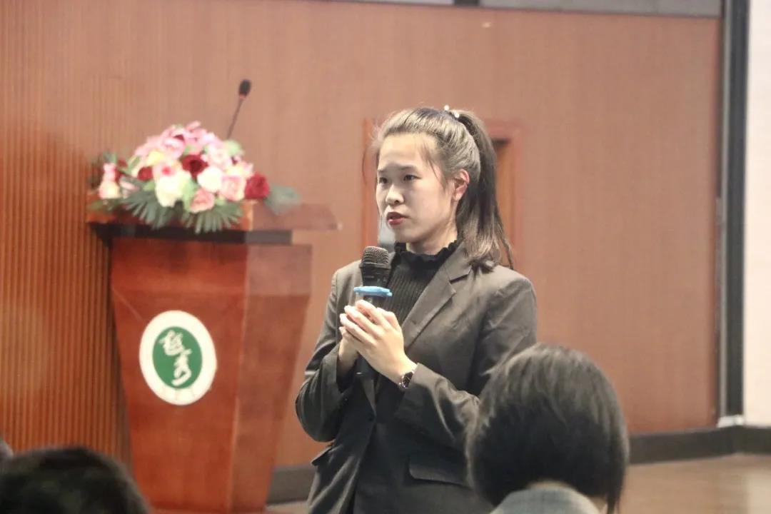 接下来,17级优秀学生代表向学弟学妹们总结了一些实习经验。曾在杭州君悦酒店餐饮部实习的潘剑蝶学姐表示,在实习工作中,要善于调节自己的情绪,遵守工作规范制度。另一位张舒洋学姐则是国际会展中心上海洲际酒店F0-GSC部的总机实习生,她认为积极与上级沟通是很有必要的,主动学习很重要。