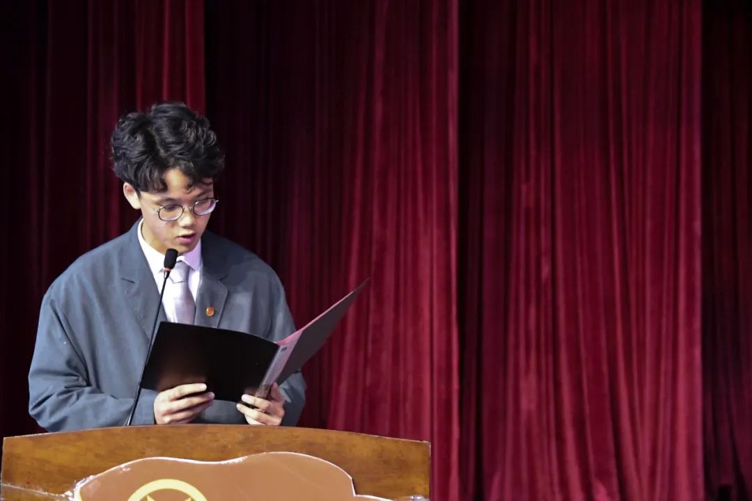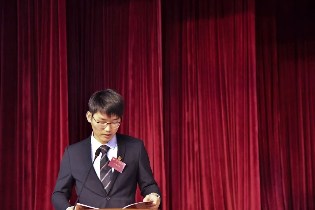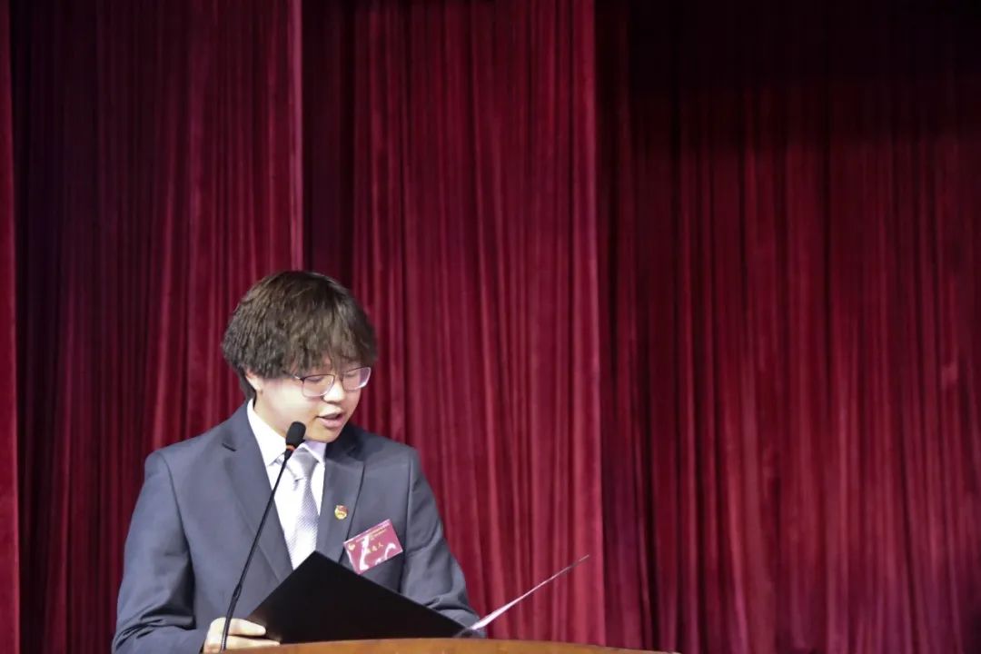 唐振华同学,宣布大会开幕,奏唱国歌。并宣读大会主席团成员名单,听取代表资格审查报告。