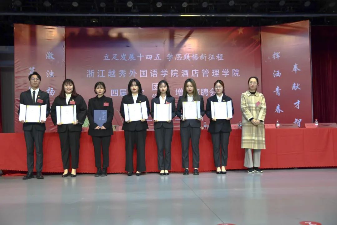 酒店管理学院党委副书记杨勤老师,为第四届团学委员会主席团颁发聘书。