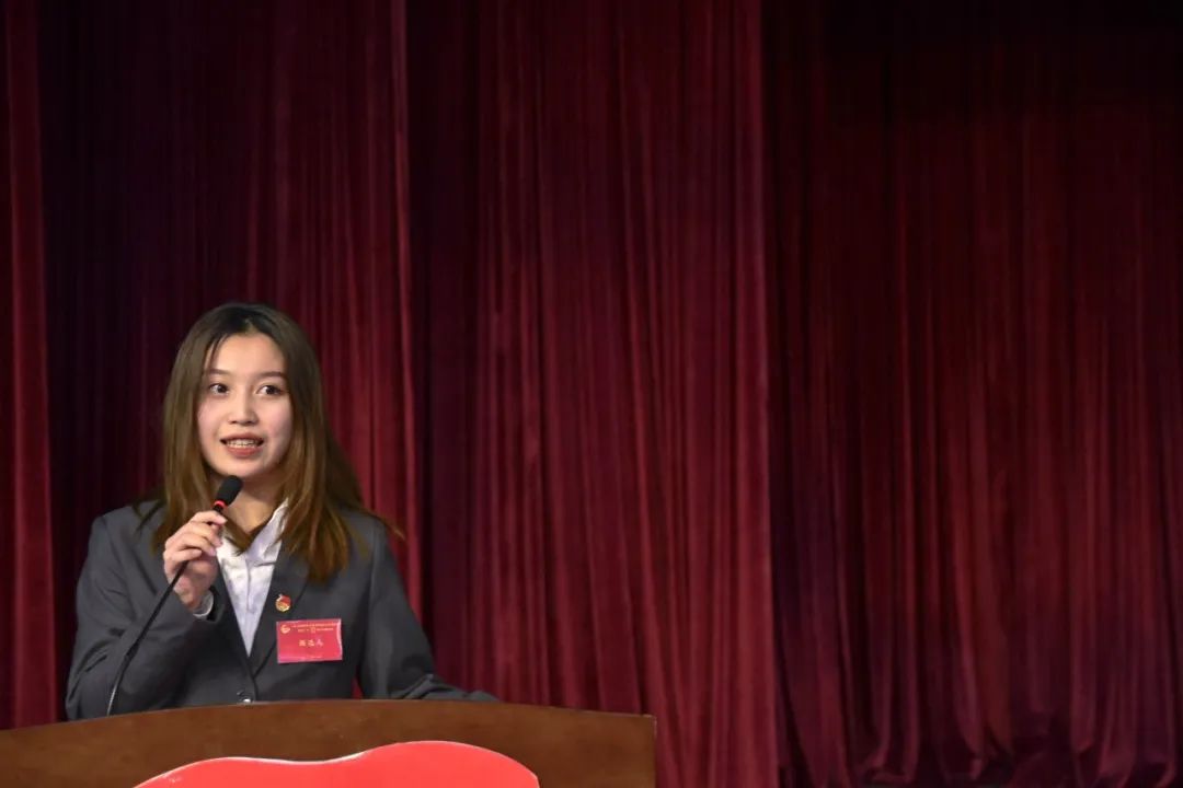 学院学生团委副书记兼学生会执行主席龙欢欢同学,作学生团委会《浙江越秀外国语学院酒店管理学院团学四届二次会议 2020年度学生会工作报告》。她表示,作为院级学生干部,应当首当其冲,完善组织机构与职能,深化组织建设,提升干部能力,树立组织形象,加强对外交流学习。重任在肩,应当奋勇向前,发扬“自信、独立、坚强”的酒管精神!