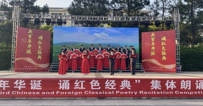 5月9日,第三届”庆百年华诞,颂红色经典”集体诗朗诵比赛在越秀镜湖校区和成广场举行。