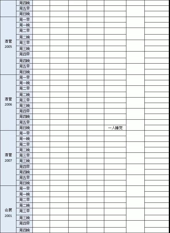 酒管2001、酒管2003、酒管2005、酒管2007、会展2001、会展2002