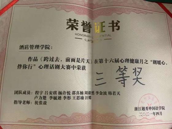 Honor@YIHA丨祝贺我院心理情景剧《跨过去,前面是片天》在校心理剧大赛中获得三等奖