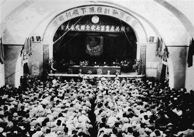 1945年4月23日至6月11日中国共产党第七次全国代表大会在延安召开。党的七大确立了毛泽东思想在全党的指导地位,确定了正确的思想路线、政治路线、组织路线、群众路线,全党实现了空前的团结。