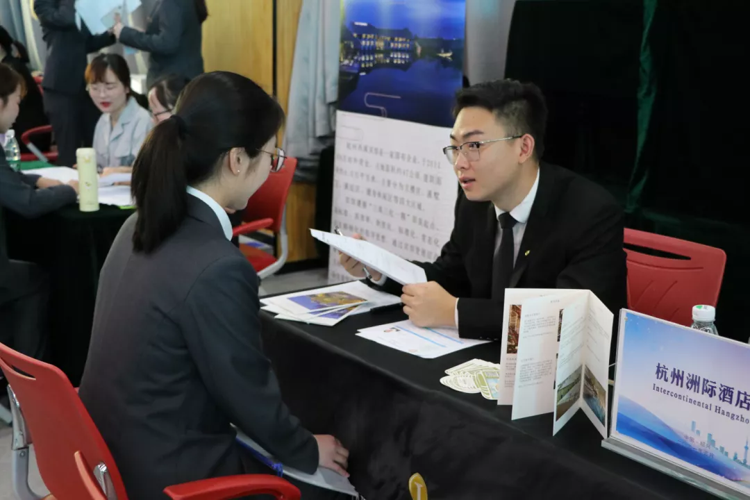 今年的双选会中,有个别酒店受到同学们的青睐。在杭州远洋凯宾斯基酒店、杭州西湖国宾馆、上海外滩华尔道夫酒店、杭州柏悦酒店的招聘场地前都排起了长队,激烈的岗位竞争使得面试的氛围更加紧张。一些在场面试的同学表示,自己此时的心情是激动而忐忑的,希望能够进入自己心仪的酒店实习并在实习中能够有所收获。