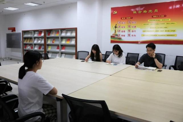 经过第一轮的面试,筛选的条件和面试的难度进一步加大,各部门干事全力以赴。期间,团学指导老师孙可玮与各部门现干部一起对现场的干事们进行了面试。他向同学们提出了关于是否能带领好各部门、是否能坚持留任等问题,对同学们未来的展望进行了进一步的了解。