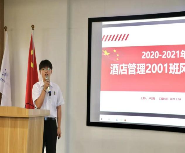 2021年6月10号下午14:00,酒店管理学院“青春心向党,建功新时代”团支部风采展在镜4-301展开。学工部思政与国防教育科科长尹标老师、酒店管理学院督导组组长刘卫星刘教授、20级辅导员孙可玮以及部分20级班主任担任本次大会的评委。