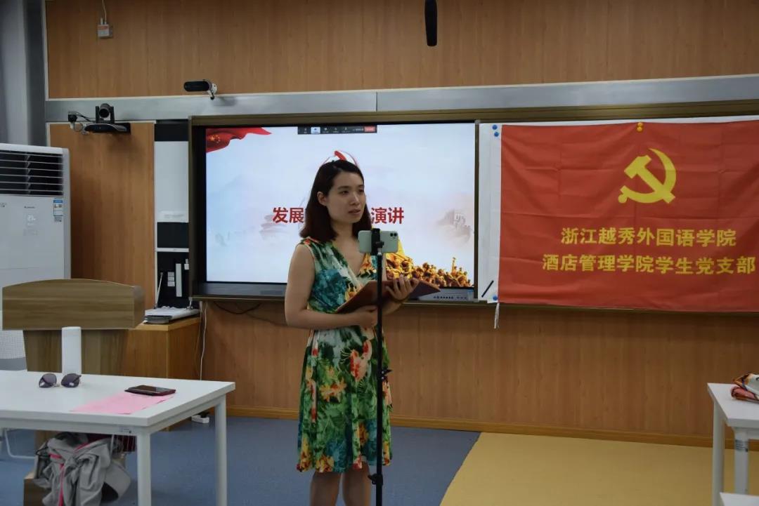 2021年6月3日,浙江越秀外国语学院酒店管理学院学生第一党支部在1-106教室召开党员发展大会。讨论接收项晨曦等18名同志为中共预备党员的相关事宜。