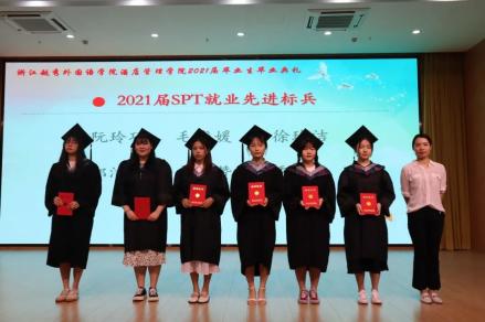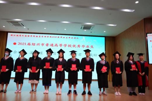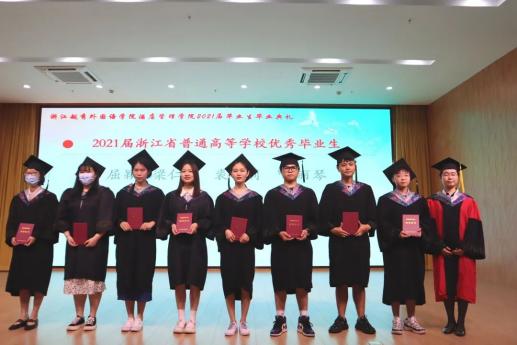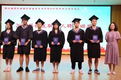 酒店管理系副主任陈婕老师为2021届浙江省优秀毕业大学生颁发证书。