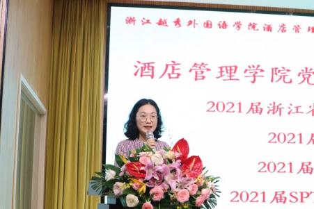 酒店管理学院党委书记陶凤宣读2021届浙江省优秀毕业大学生、2021届校级优秀毕业生,2021届优秀毕业班集体、2021届SPT就业先进标兵表彰文件