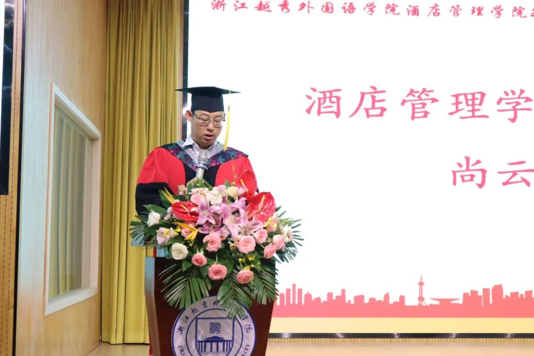6月20日,浙江越秀外国语酒店管理学院2021届毕业生毕业典礼暨学士学位仪式在越秀厅隆重举行,208名毕业生圆满完成大学学业,207名同学获得学士学位证,开始人生新的征程。浙江越秀外国语学院副校长朱文斌教授,酒店管理学院党委书记陶凤老师,酒店管理学院常务副院长尚云峰副教授、酒店管理学院党委副书记杨勤老师,酒店管理专业许赛副教授、酒店管理专业王书侠副教授、学院各系部负责人、院办、学工办的老师以及全体毕业班班主任、辅导员出席了毕业典礼。毕业典礼由学院党委副书记杨勤老师主持。