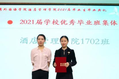 酒店管理系副主任魏爱萍老师为2021届校级优秀毕业生颁发证书。