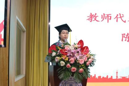 教师代表陈婕老师发言,万语千言表达不尽陈婕老师对毕业生们的依依不舍,她将这份浓浓的师生情化作对同学们最美好的祝福——祝毕业生们鹏程万里、前程似锦。同时陈婕老师希望同学们脚踏实地,不忘初心,在最美的年华,写最好的诗,走最好的路,圆最好的梦。