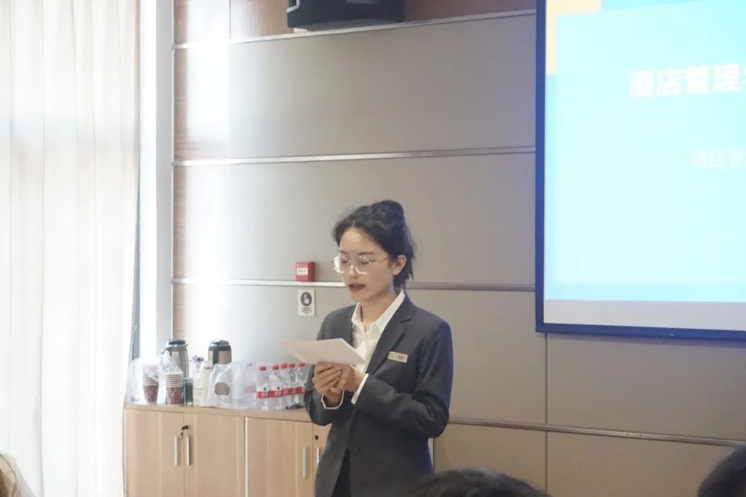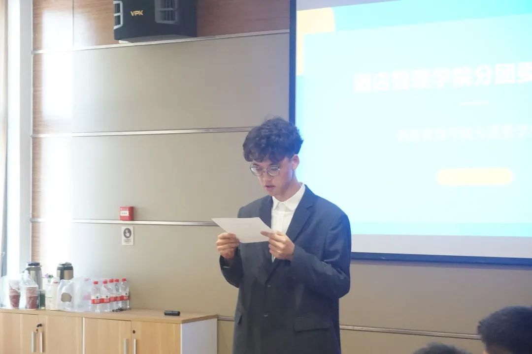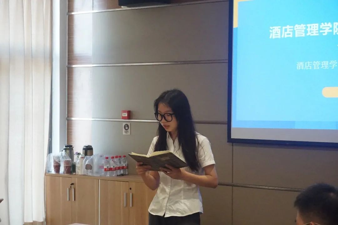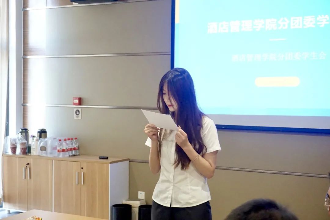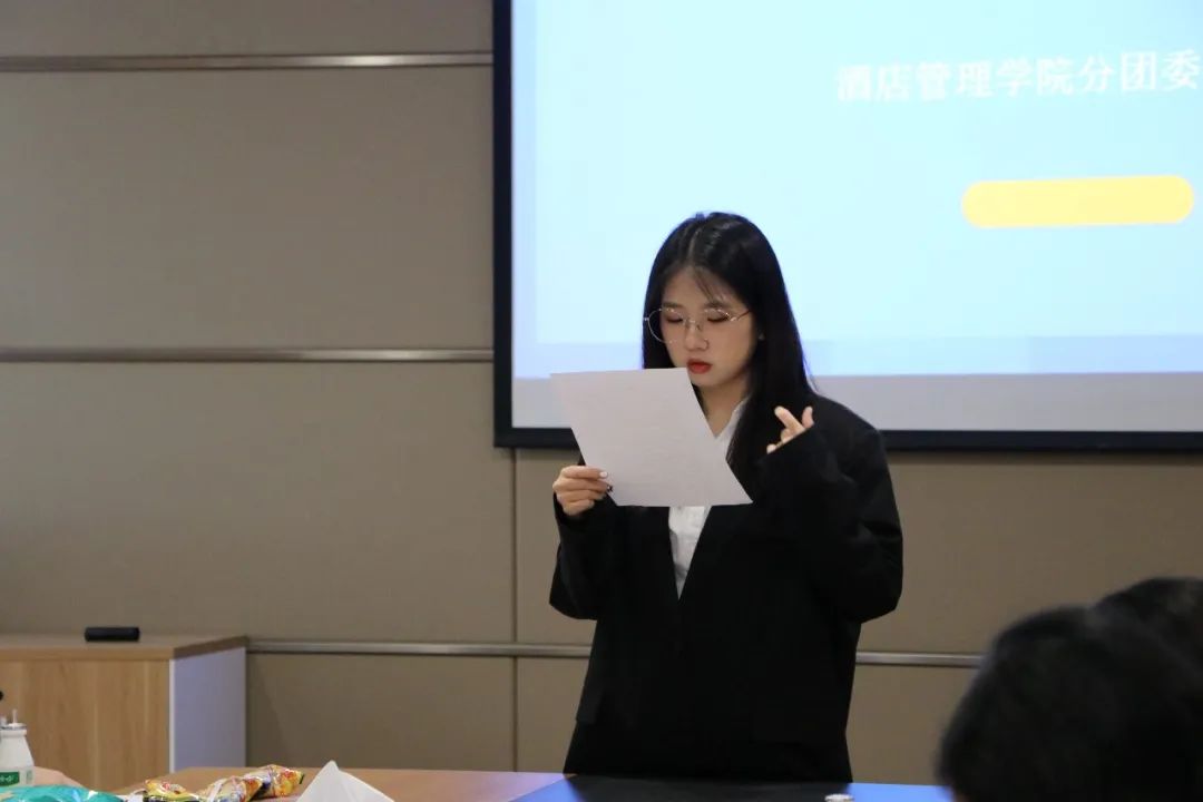 组织部部长何琦涌汇报他们上学期的工作汇总,组织部紧跟党的脚步,积极贯彻党的精神,在办事水平上有计划,有规划,倡导高效率的执行。同时她也表示部门内存在的不足,也针对性的提出解决的方法,并希望组织部能继续在团学事业道路上奋勇前进,为酒店管理团委学生会做出更大的贡献。