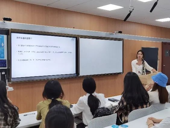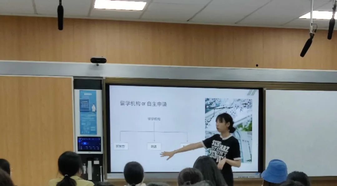 李艺萱讲述了自己的留学目的,以及留学需准备的材料,如何选择合适专业和学校,在大学期间制定合理的学习计划,使同学们更清晰的了解到出国留学的前中后准备。