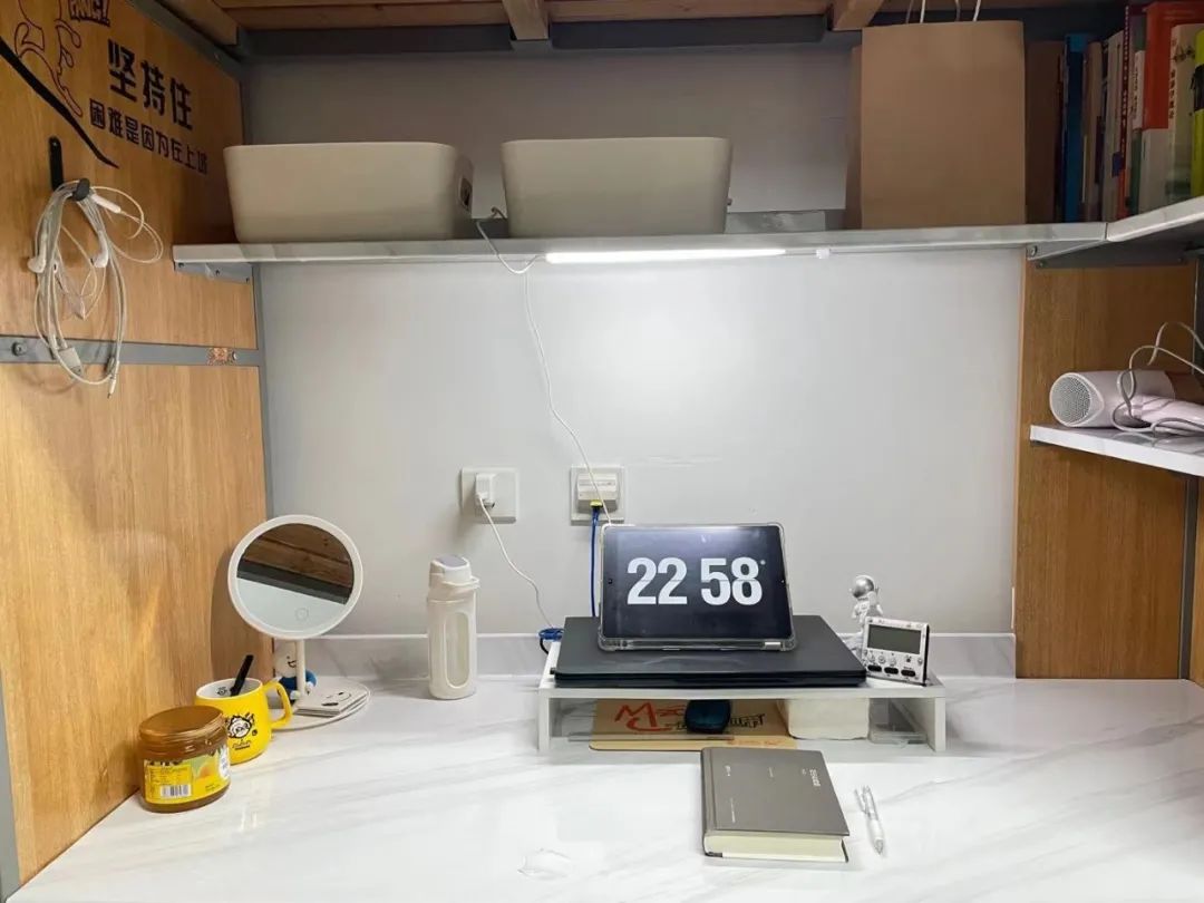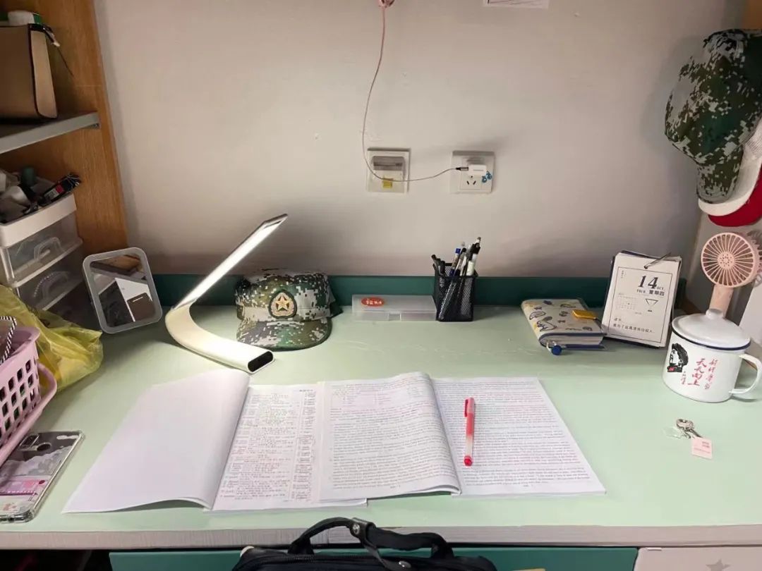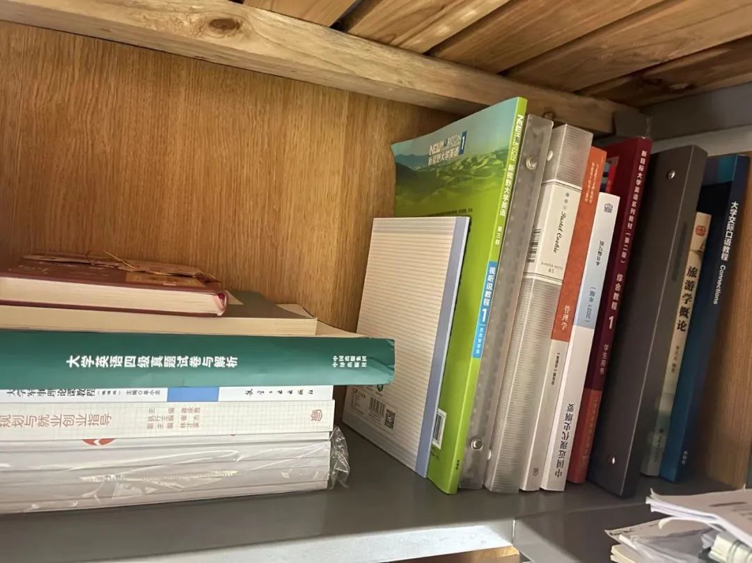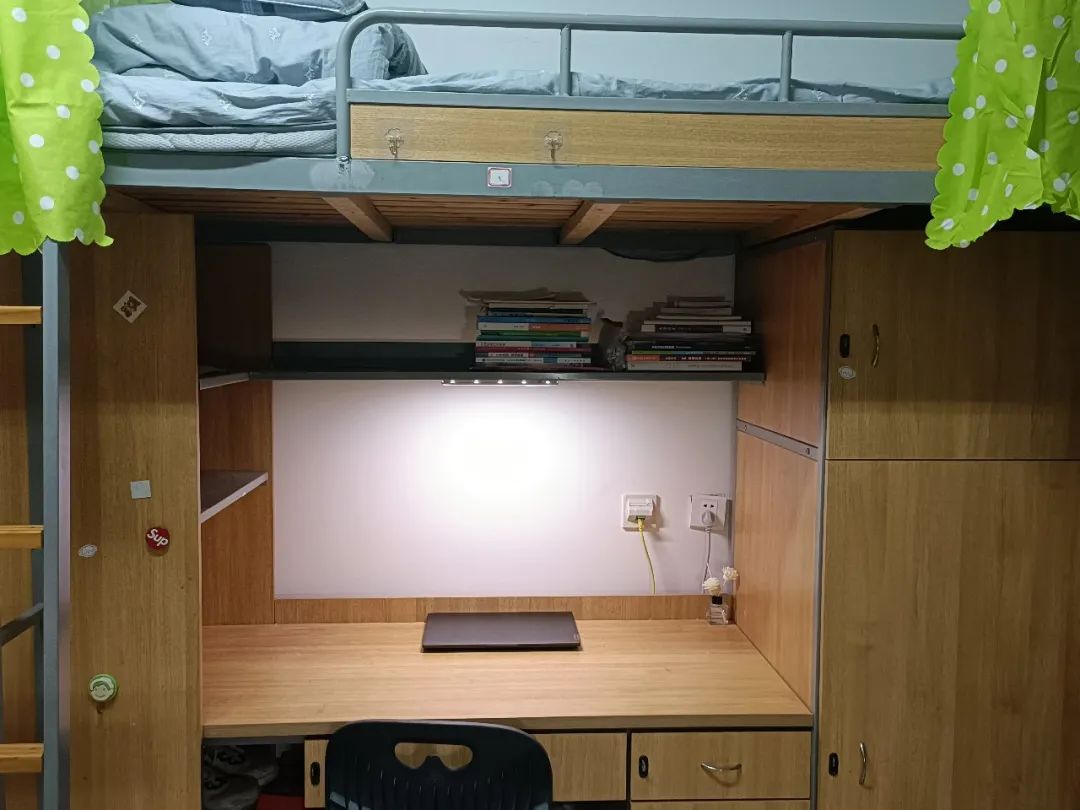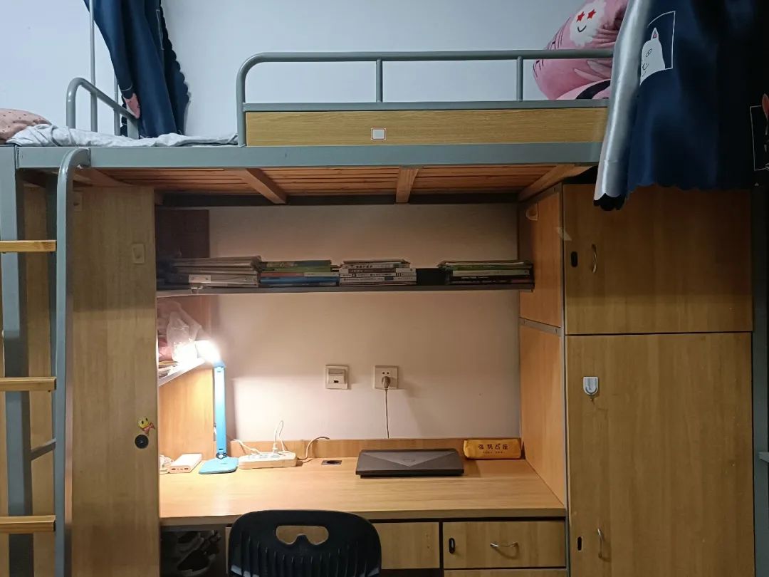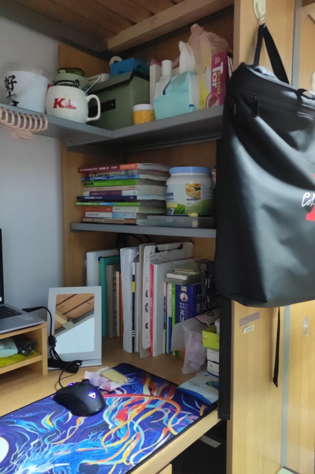 我们寝室没有太多的装饰,在物质方面不是很讲究。在我们寝室最常见的就是学习状态下的